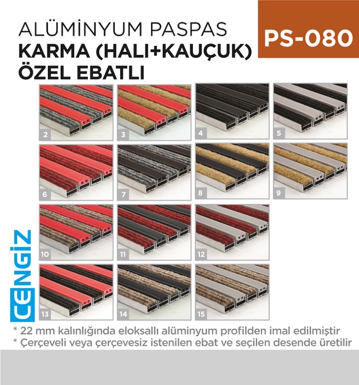 ALÜMİNYUM PASPAS KARMA (HALI+KAUÇUK)