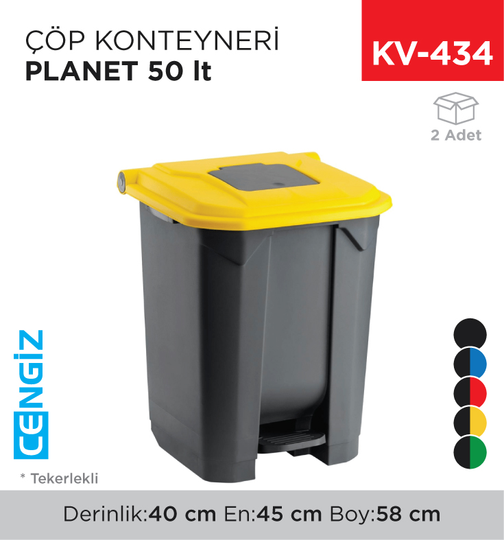 İzmir merkezli toptan satış yapan firmamız Cengiz Plastik, işletmelerin ve kurumların ihtiyaçlarına yönelik profesyonel çözümler sunmaktadır. ÇÖP TORBALARI & KOVALAR & GERİDÖNÜŞÜMLER, PEDALLI ÇÖP KOVALARI grubunda yer alan ÇÖP KONTEYNERİ PLANET 50 LT (UP 226) (Stok Kodu: KV-434), dayanıklı yapısı ve kalite standartlarına uygunluğu ile farklı sektörlerdeki ticari işletmelerin toplu tüketim ihtiyaçlarını karşılamak üzere tedarik edilmektedir.